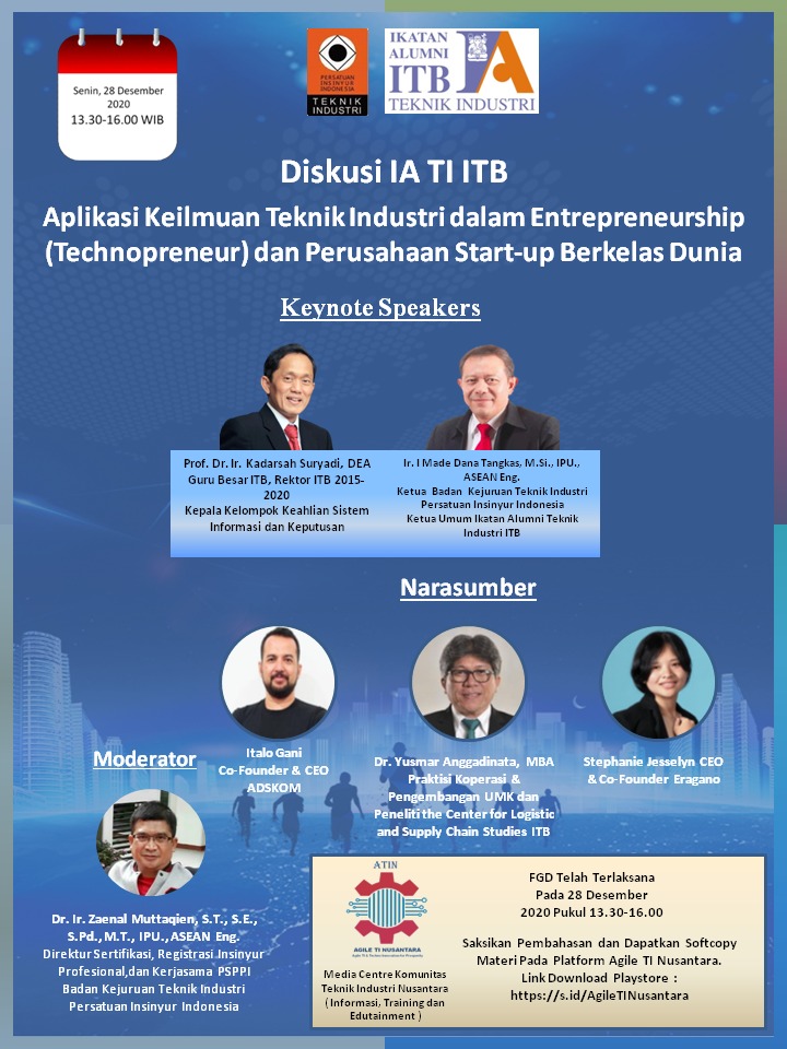 Diskusi IA TI ITB – BKTI-PII : Aplikasi Keilmuan Teknik Industri dalam Entrepreneurship (Technopreneur) dan Perusahaan Start-up Berkelas Dunia