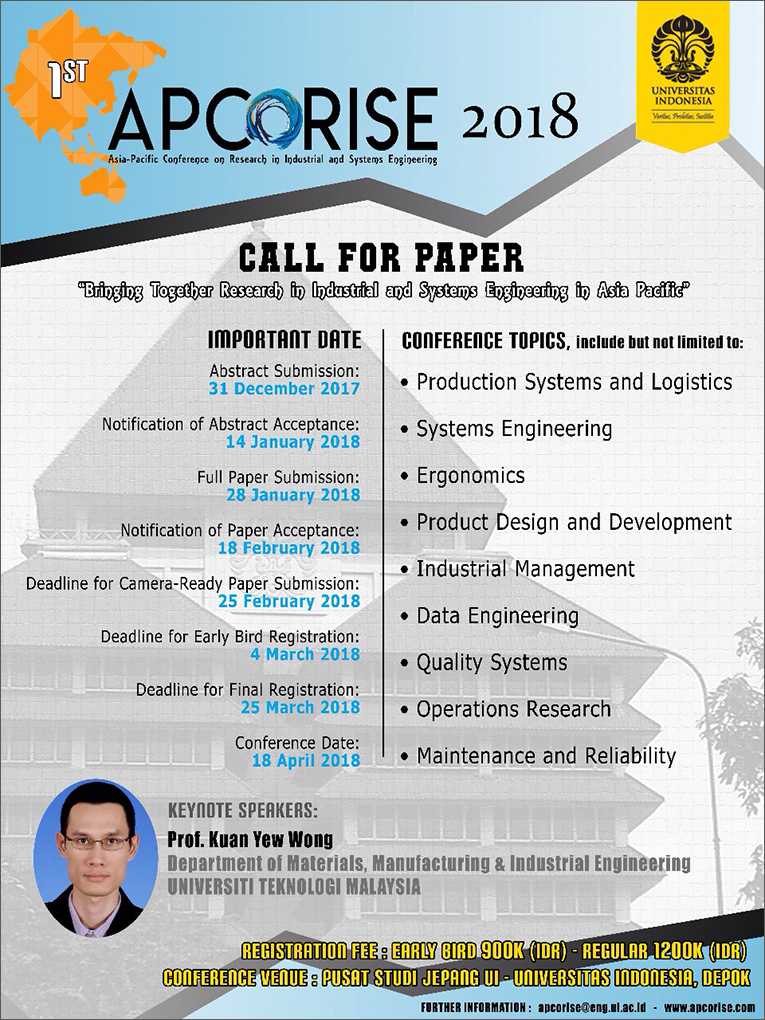 Asia-Pacific Conference on Research in Industrial and System Engineering (APCORISE 2018)