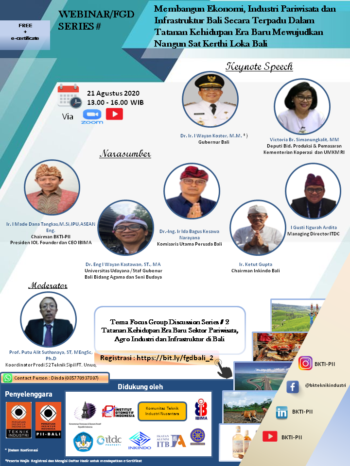 [Pengumuman] Focus Group Discussion Series # 2 Tatanan Kehidupan Era Baru Sektor Pariwisata, Agro Industri dan Infrastruktur di Bali