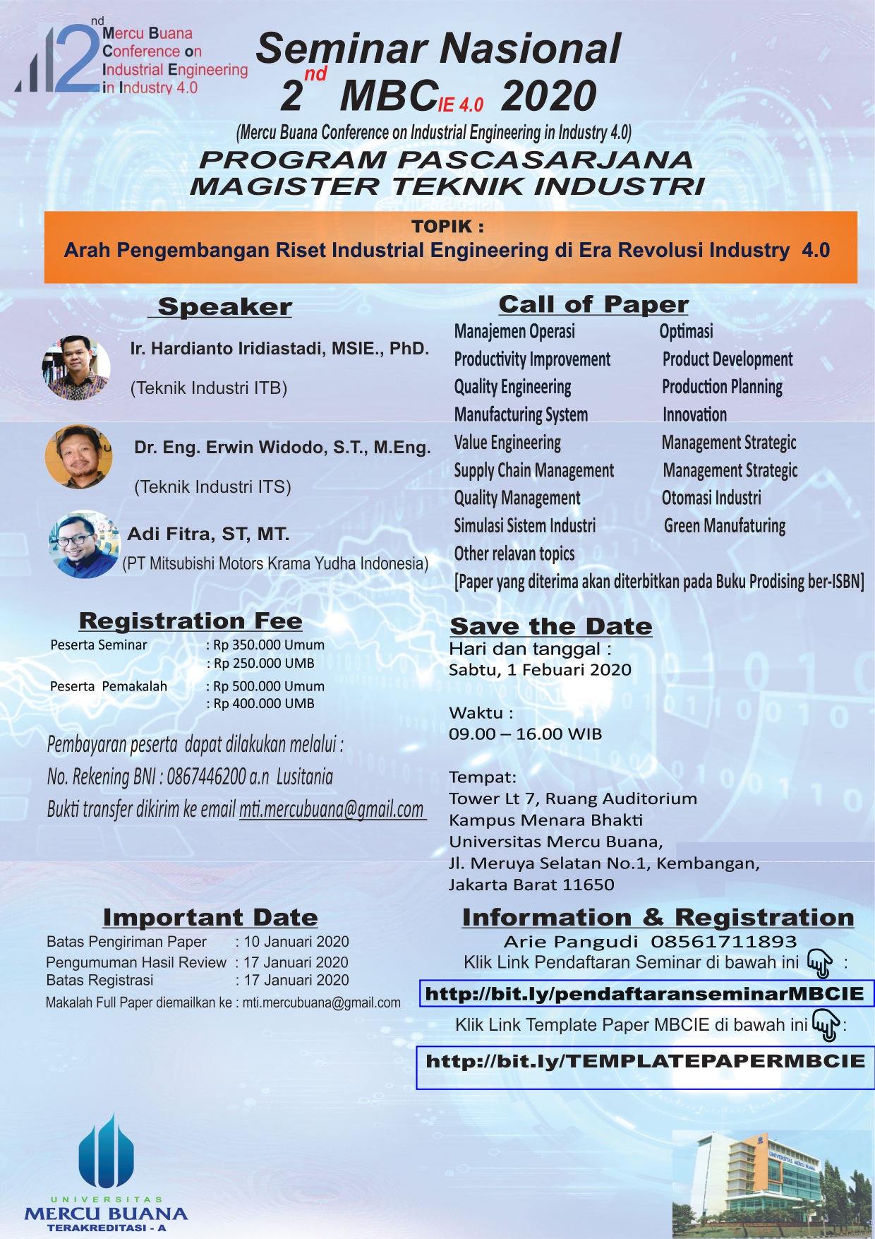 [Pengumuman] Seminar Nasional 2nd MBC IE 4.0 2020