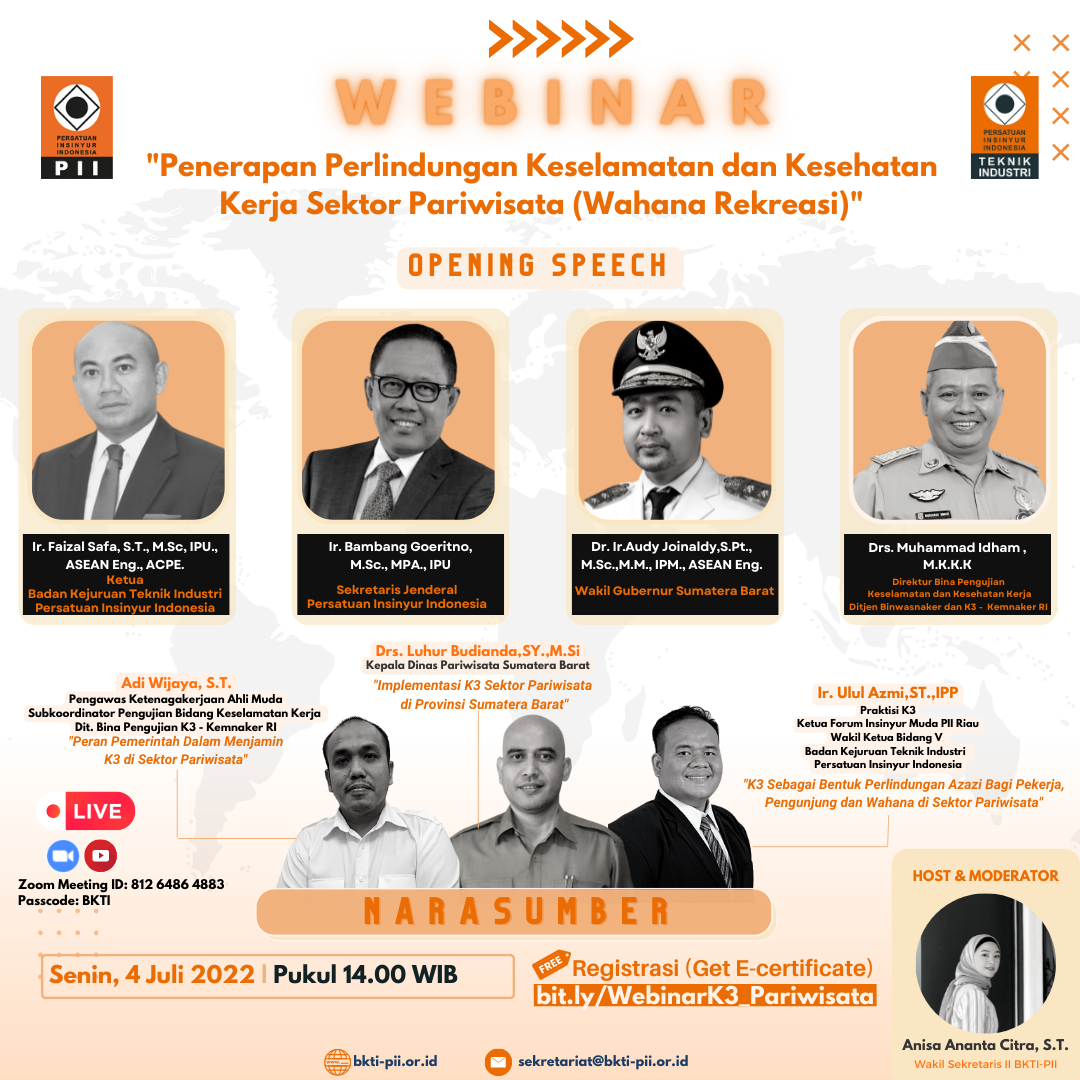 PERSATUAN INSINYUR INDONESIA & BADAN KEJURUAN TEKNIK INDUSTRI – PERSATUAN INSINYUR INDONESIA WEBINAR “Penerapan Perlindungan Keselamatan dan Kesehatan Kerja Sektor Pariwisata (Wahana Rekreasi)”