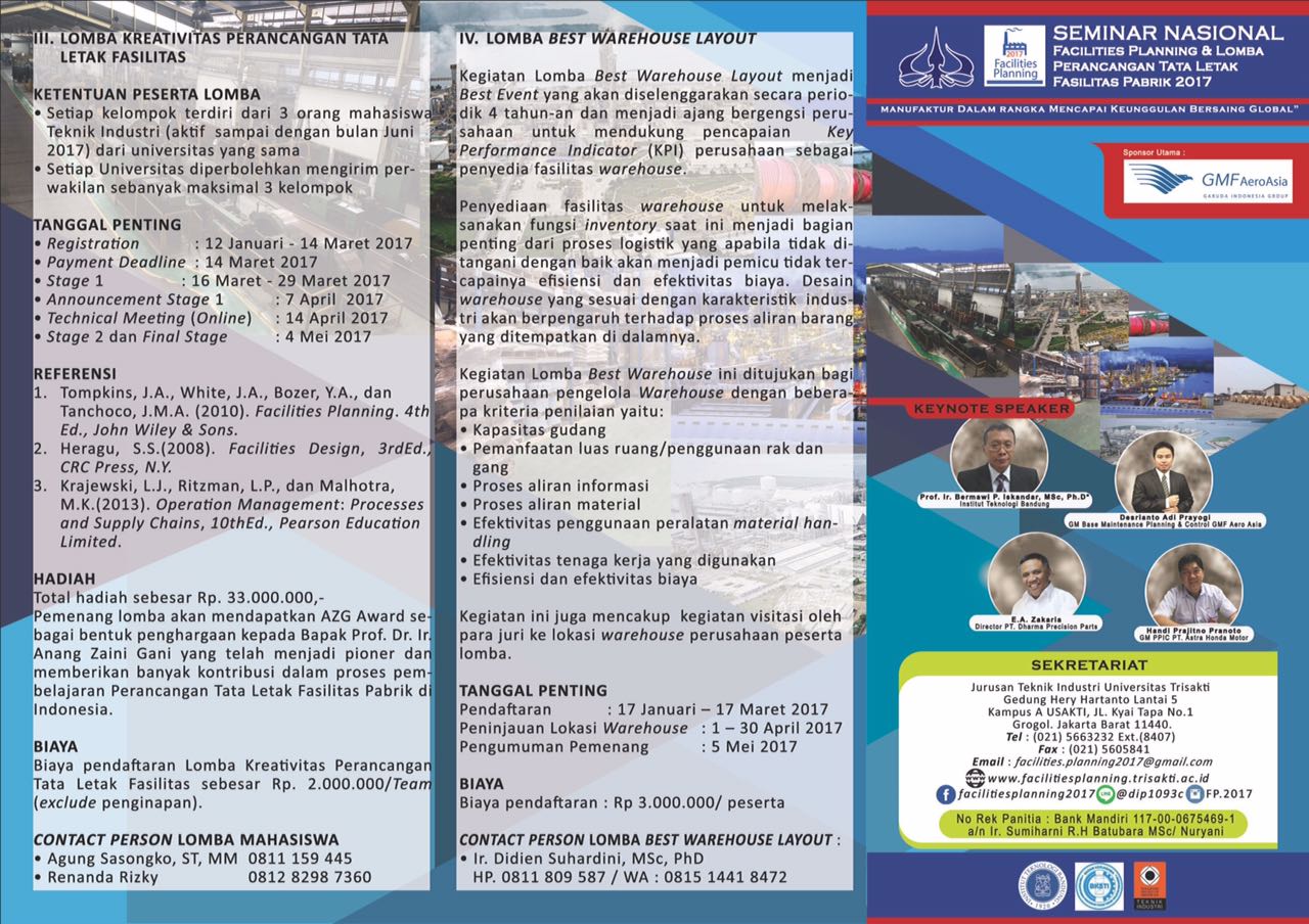 Seminar Nasional Facilities Planning & Lomba Perancangan Tata Letak Fasilitas Pabrik 2017