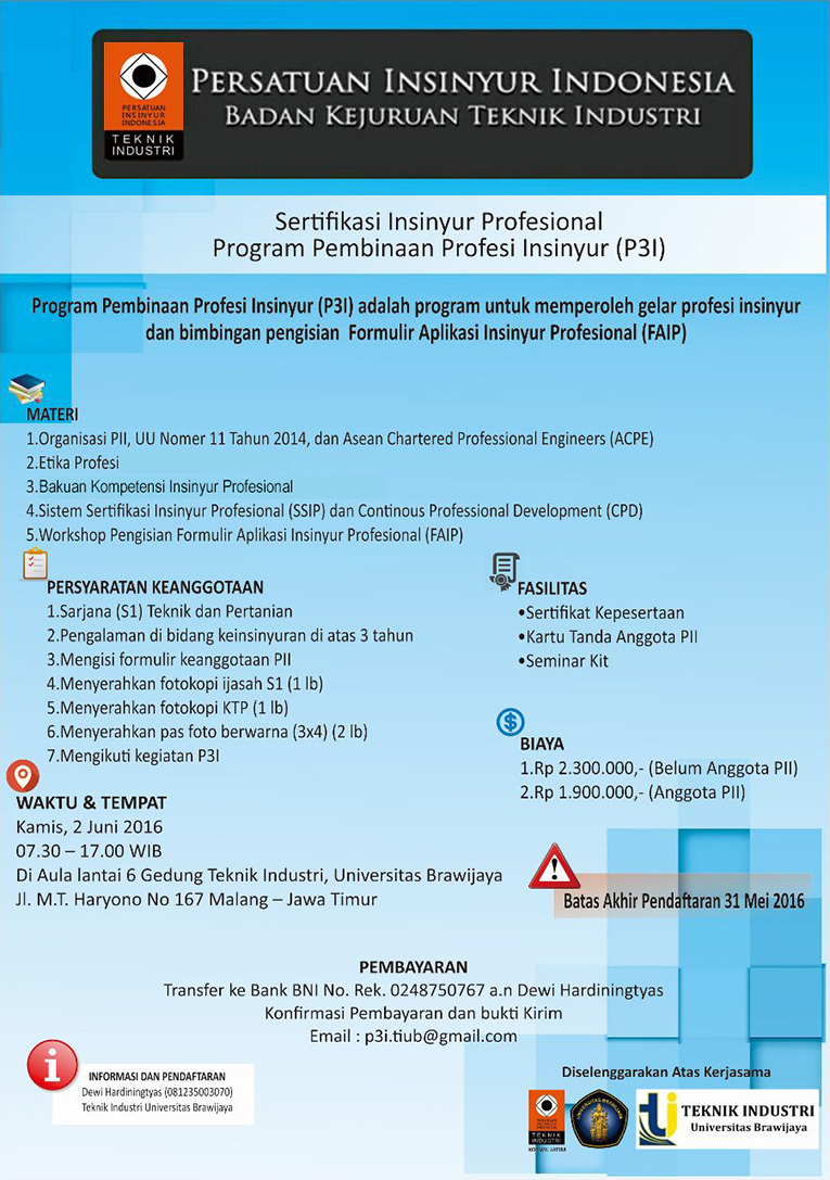Sertifikasi Insinyur Profesional – Program Pembinaan Profesi Insinyur (P3I) (Malang 2 Juni 2016)