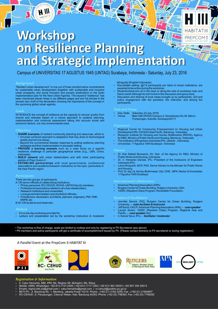 Resiliency Workshop (UNTAG, Saturday, July 23rd 2016 Surabaya)