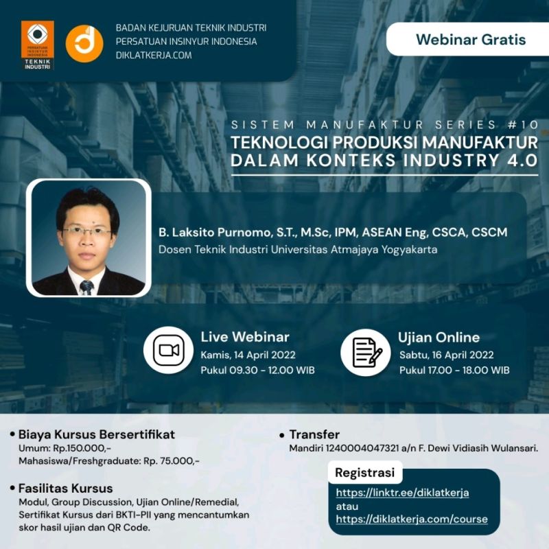 PERSATUAN INSINYUR INDONESIA & BADAN KEJURUAN TEKNIK INDUSTRI – PERSATUAN INSINYUR INDONESIA WEBINAR “Penerapan Perlindungan Keselamatan dan Kesehatan Kerja Sektor Pariwisata (Wahana Rekreasi)”