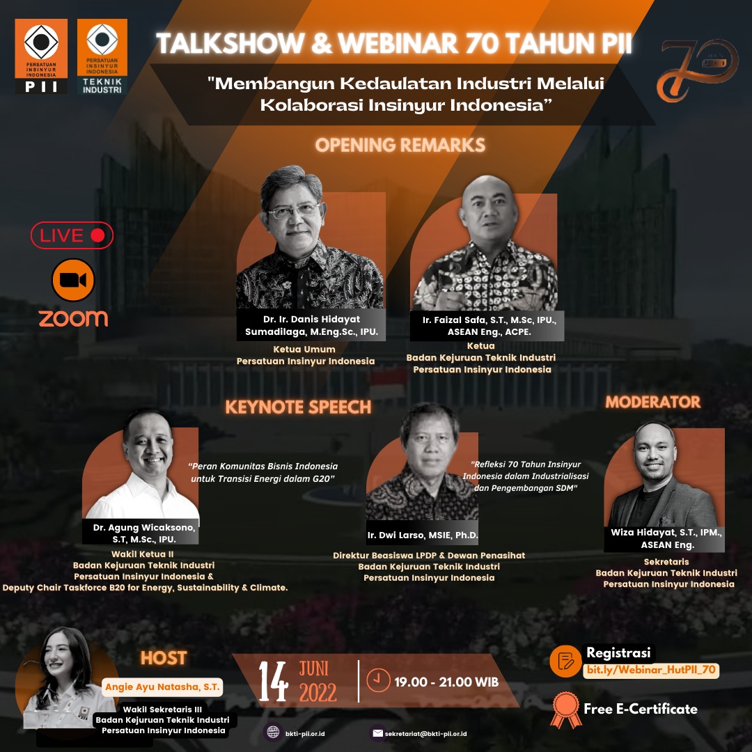 Talkshow & Webinar: 70 TAHUN PERSATUAN INSINYUR INDONESIA “Membangun Kedaulatan Industri Melalui Kolaborasi Insinyur Indonesia”
