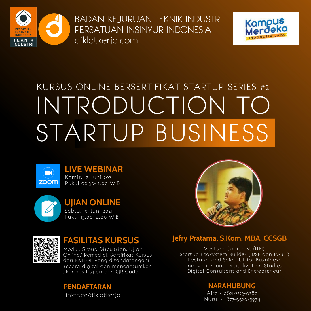 Instruktur: Jefry Pratama, S.Kom, MBA, CCSGB (Venture Capitalist dan Startup Ecosystem Builder)