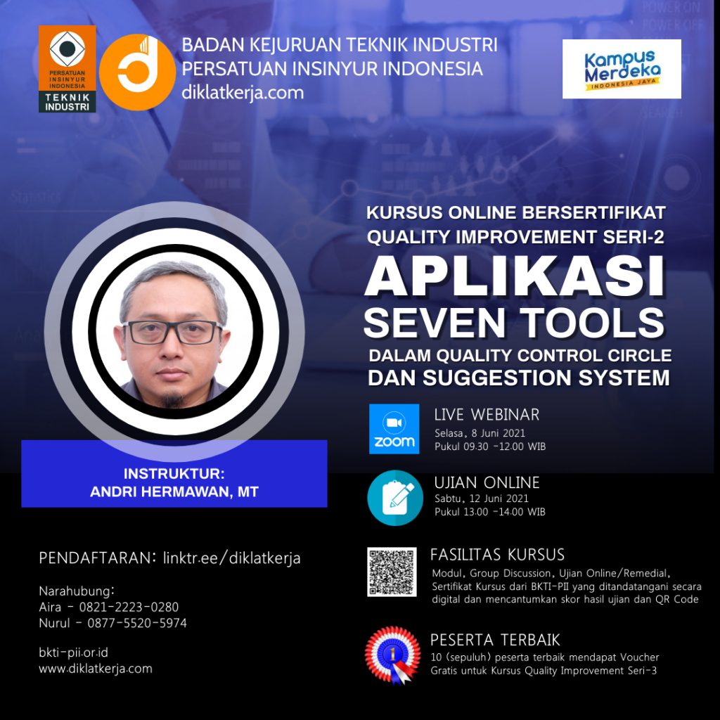 Ikuti Webinar Quality Improvement Seri-2 kerjasama Badan Kejuruan Teknik Industri (BKTI-PII) dan diklatkerja.com: