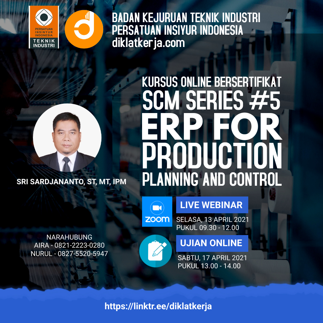 Ujian oonline SCM Seri-5 kerjasama Badan Kejuruan Teknik Industri Persatuan Insinyur Indonesia (BKTI-PII) dan diklatkerja.com: