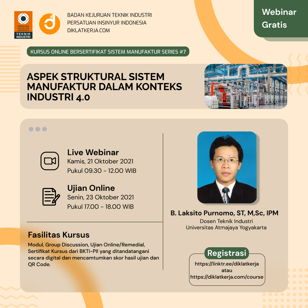 Instruktur: B. Laksito Purnomo, S.T., M.Sc, IPM, ASEAN Eng (Dosen Teknik Industri Universitas Atma Jaya Yogyakarta)