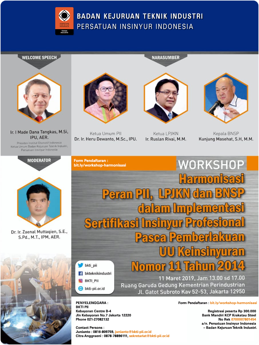 Workshop Harmonisasi peran PII, LPJKN dan BNSP dalam implementasi Sertifikasi Insinyur Profesional pasca pemberlakuan UU Keinsinyuran No. 11 Tahun 2014
