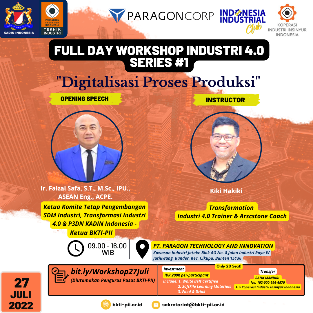 Salam Insinyur Indonesia! . . . — Badan Kejuruan Teknik Industri - Persatuan Insinyur Indonesia (BKTI-PII) bekerjasama dengan Komite Tetap Pengembangan SDM Industri, Transformasi Industri 4.0 dan P3DN Kadin Indonesia, Paragon Corp (Wardah Cosmetics), Indonesia Industrial Club dan Koperasi Industri Insinyur Indonesia mengadakan Full Day Workshop dengan tema "Digitalisasi Proses Produksi". Opening Speech: Ir. Faizal...