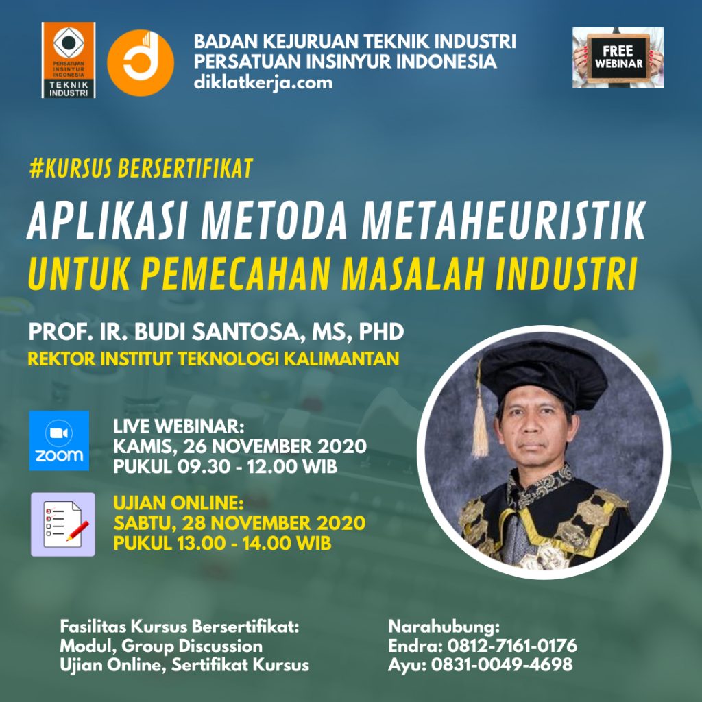 Ikuti Webinar Metoda Metaheuristik Seri-1 kerjasama Badan Kejuruan Teknik Industri PII (BKTI-PII) dengan diklatkerja.com: