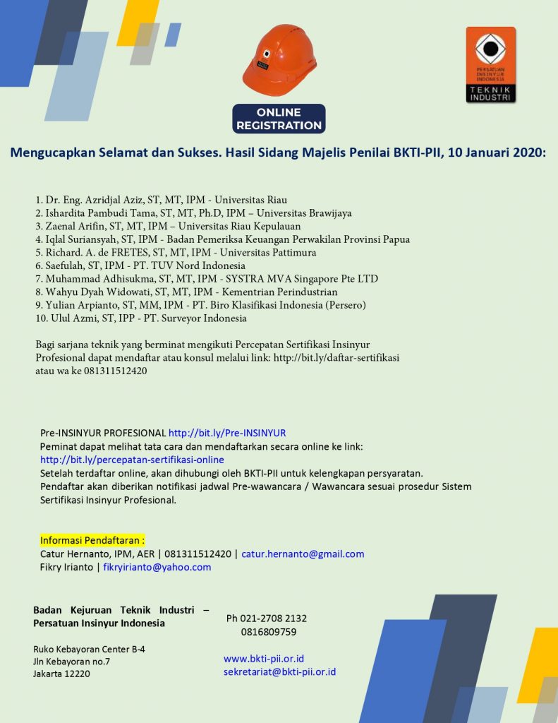 [Pengumuman] Hasil Sidang Majelis Penilai BKTI, 10 January 2020