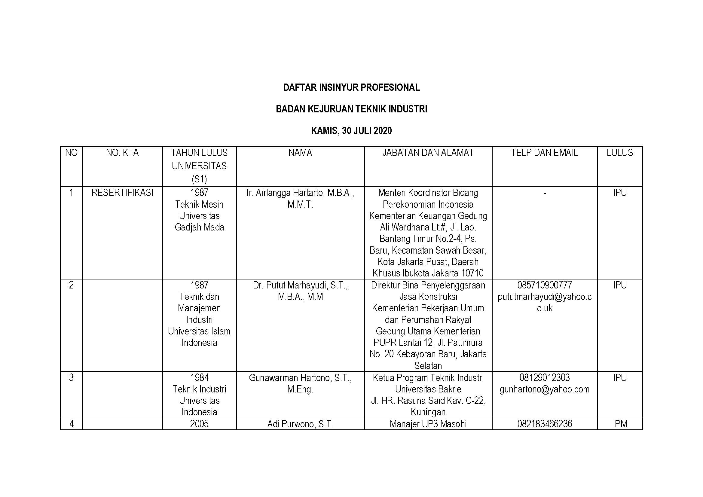 [Pengumuman] Hasil Sidang Majelis Penilai BKTI, 30 Juli 2020