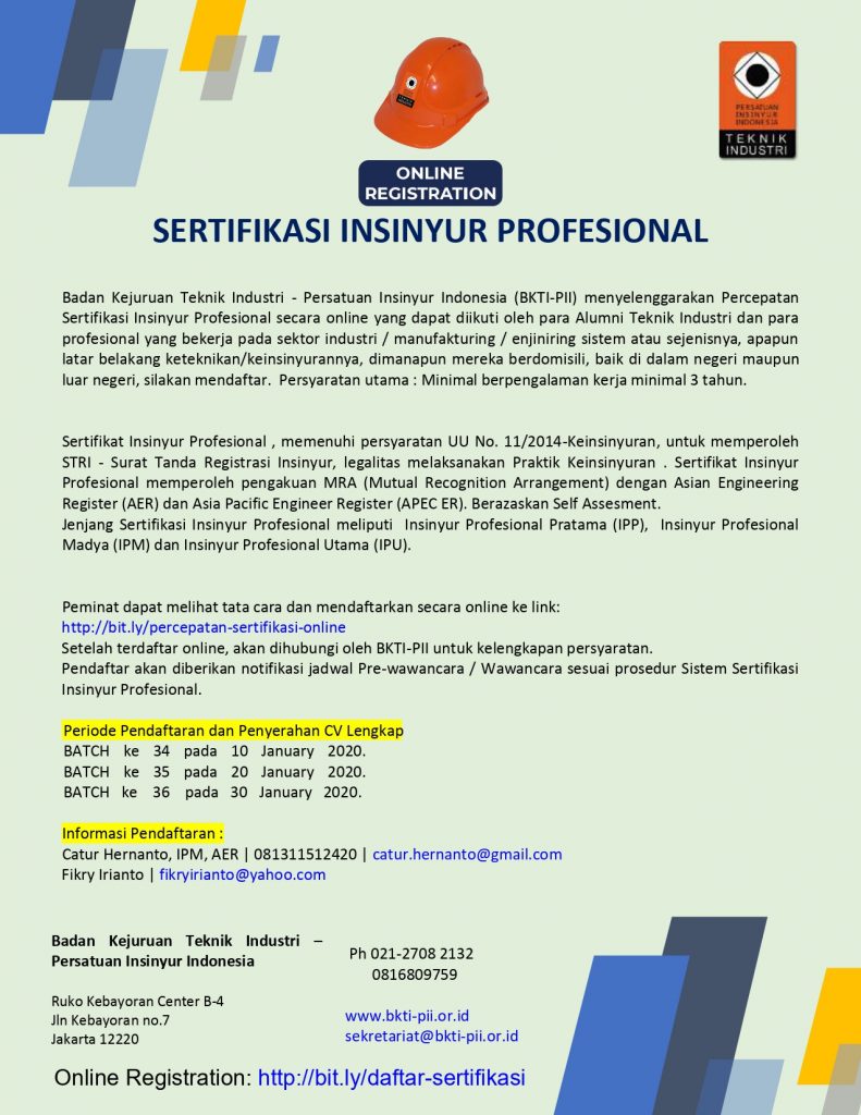 [Pengumuman] SERTIFIKASI INSINYUR PROFESIONAL JANUARY 2020