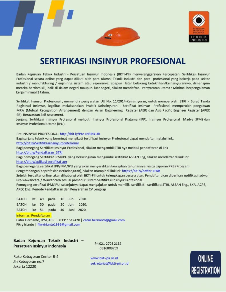 [Pengumuman] SERTIFIKASI INSINYUR PROFESIONAL JUNI 2020