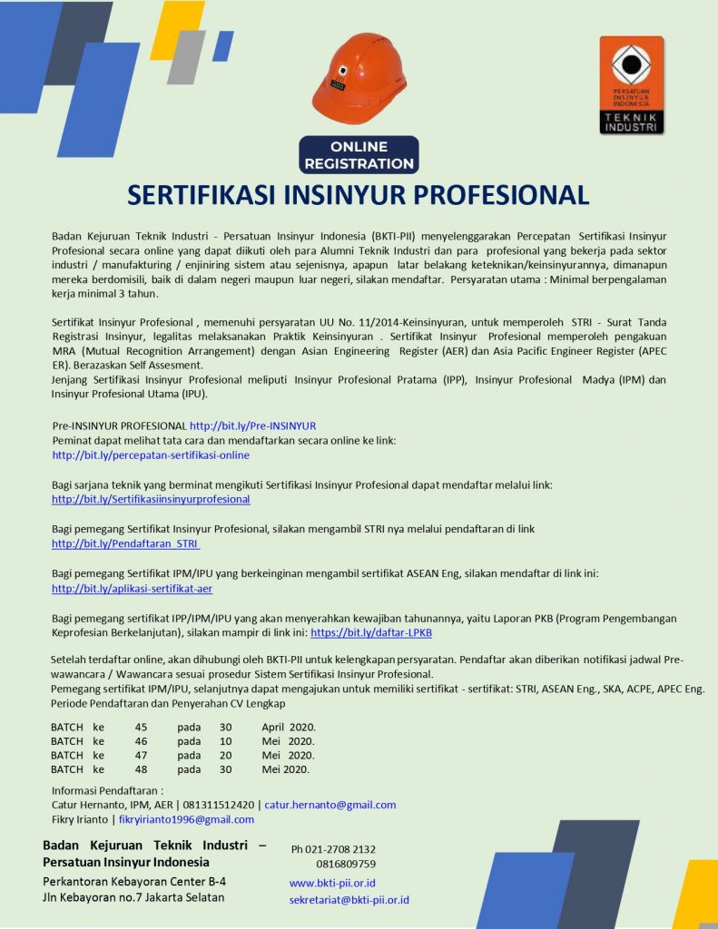 [Pengumuman] SERTIFIKASI INSINYUR PROFESIONAL May 2020