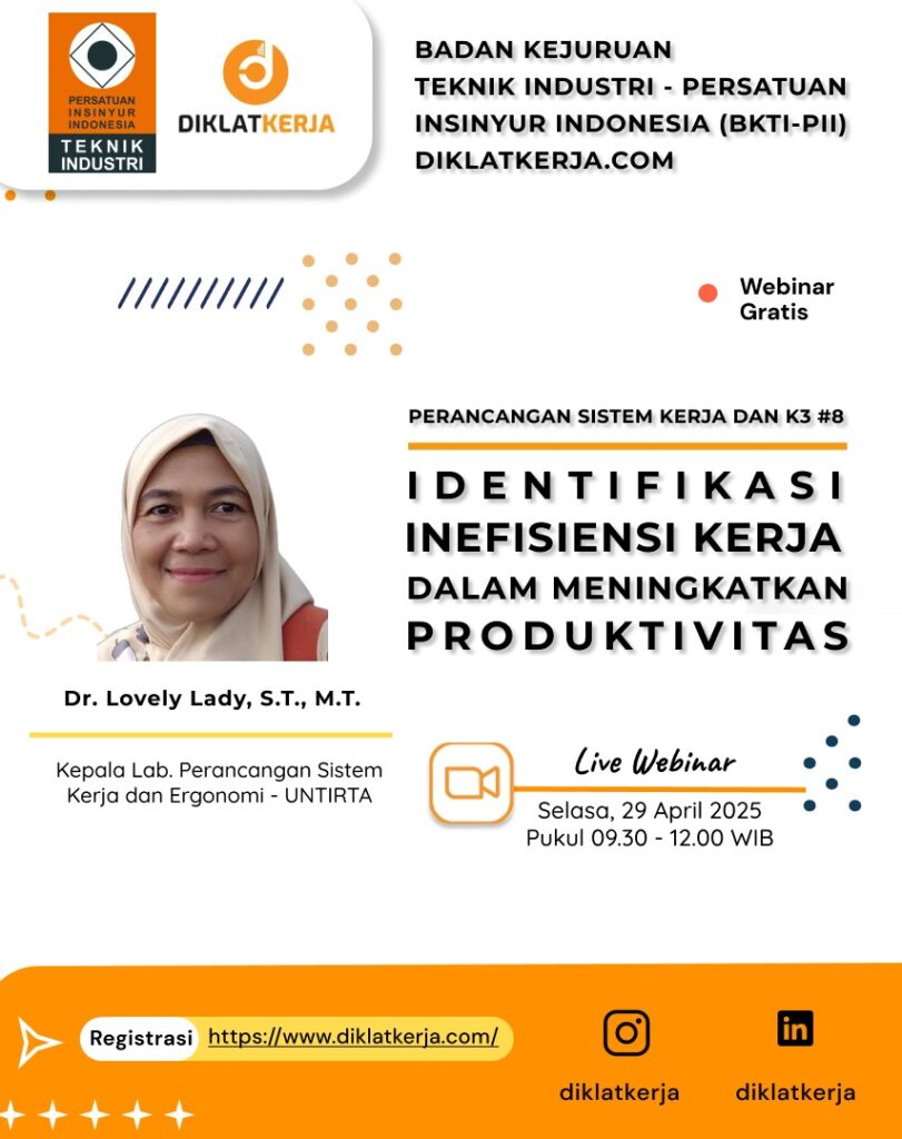Pendaftaran: https://www.diklatkerja.com/course/identifikasi-efisiensi-kerja-dalam-meningkatkan-produktivitas/
