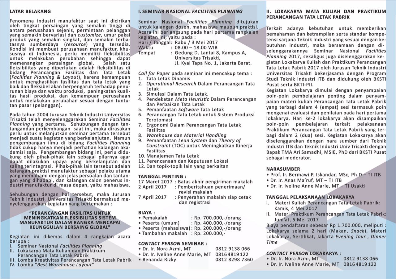 Seminar Nasional Facilities Planning & Lomba Perancangan Tata Letak Fasilitas Pabrik 2017
