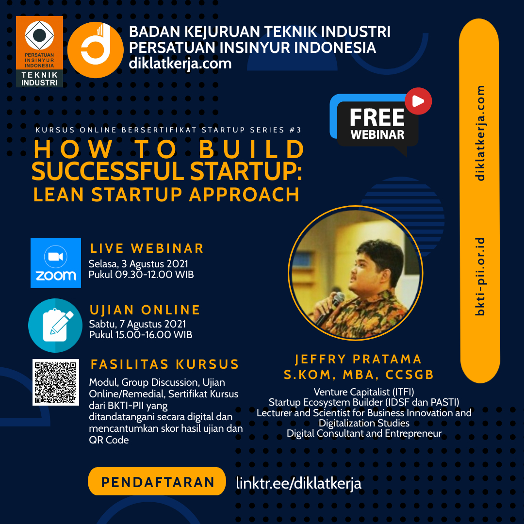 Ikuti Webinar Startup Series #3 kerjasama Badan Kejuruan Teknik Industri (BKTI-PII) dan diklatkerja.com: